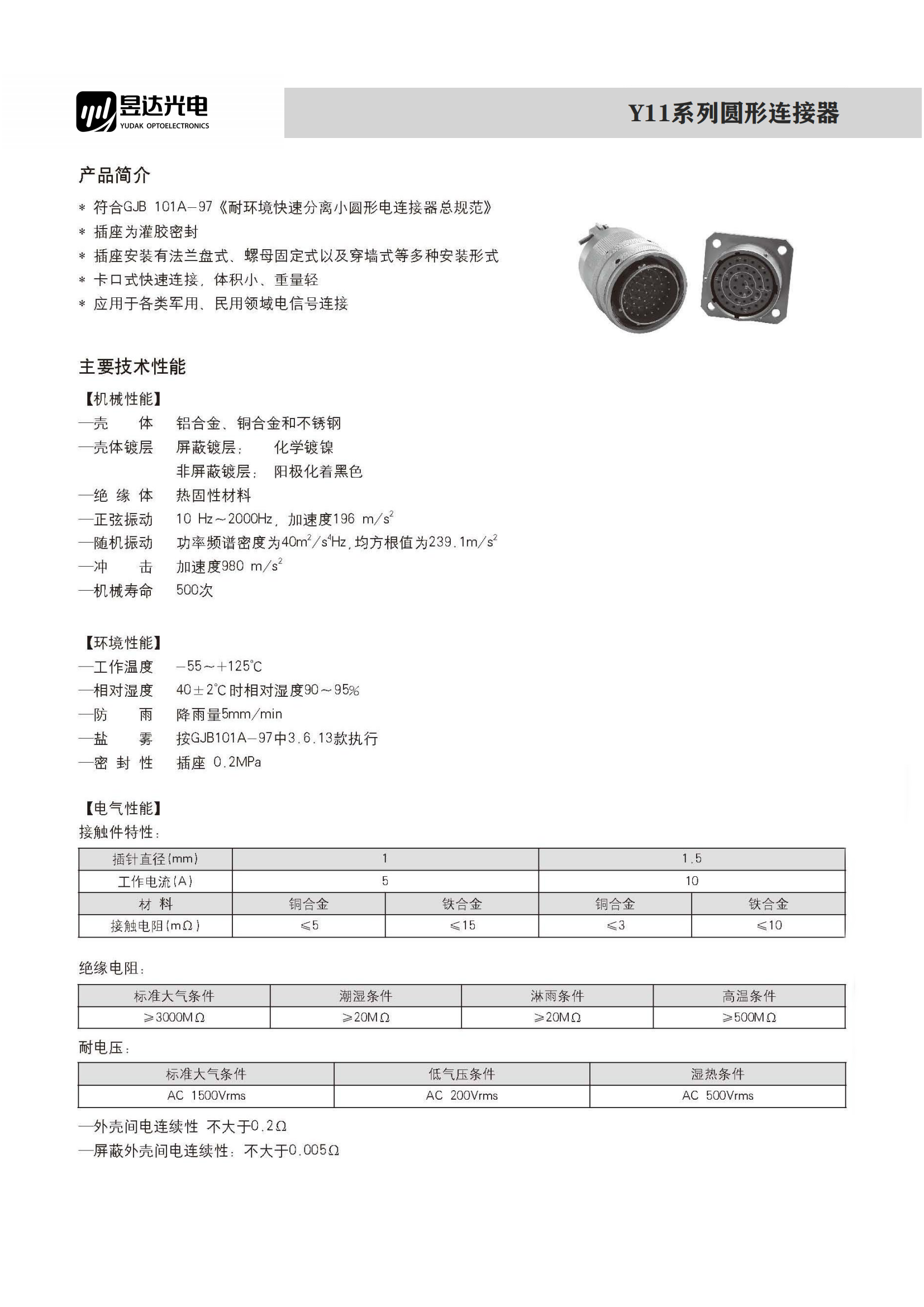 Y11系列连接器产品简介