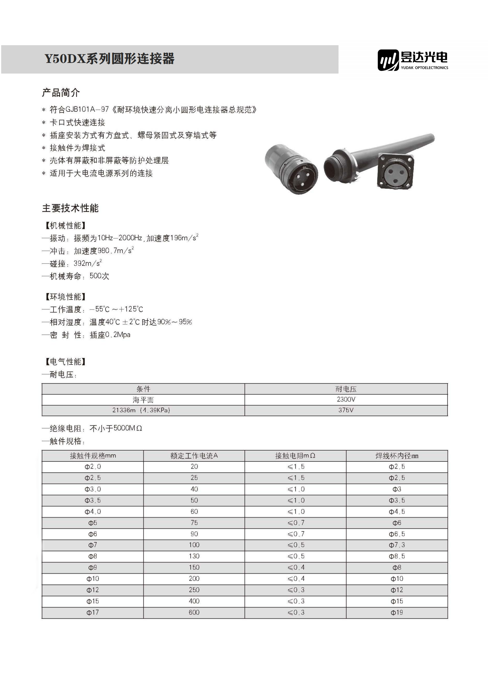 Y50DX系列连接器产品简介